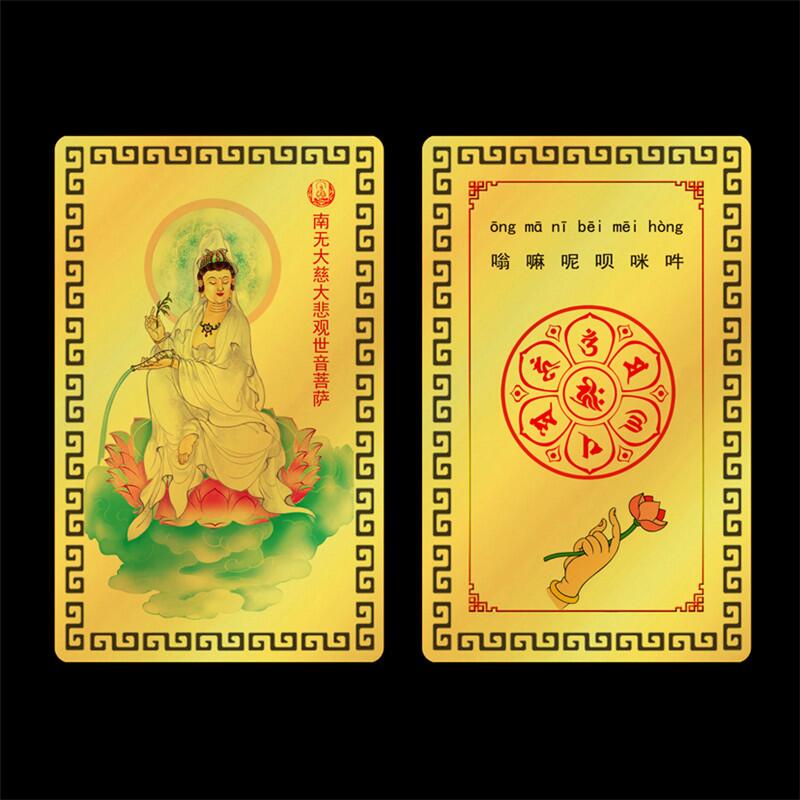佛畫佛像唐卡 觀音菩薩金屬佛卡 注音版六字真言咒輪卡片 佛教金卡滿58元包郵
