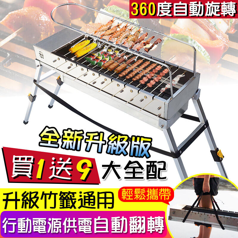 缺貨中-新型不鏽鋼自動旋轉烤肉架【竹籤、烤針通用款】304不鏽鋼烤網烤針/新型烤肉架燒烤爐中秋烤肉