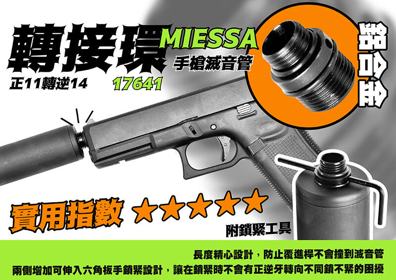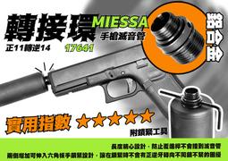 RST 紅星 - MIESSA 手槍滅音管 帶孔轉接環 鋁製 附鎖緊工具 正11轉逆14 適用WE手槍 .. 17641