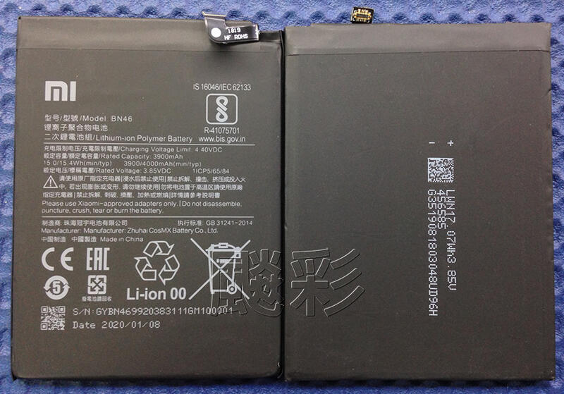 【飈彩] 附工具電池膠 小米 紅米 紅米7 Redmi BN46 Note8 Note 8T 電池 內置電池