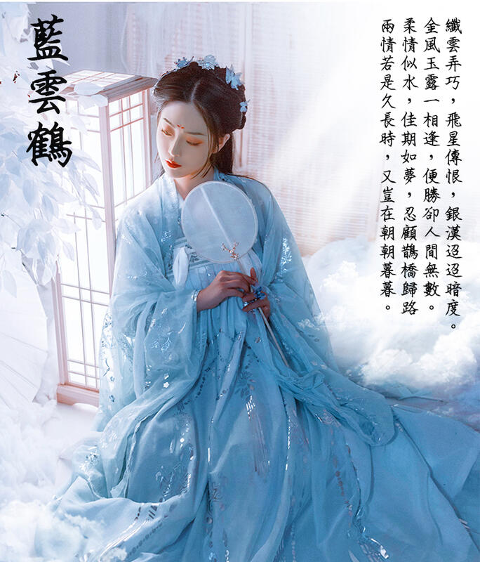 【§ 衫衫飾飾 §】10054【藍雲鶴S-XL號】齊胸襦裙廣袖仙氣飄逸古風傳統中國風仙鶴漢服舞蹈服
