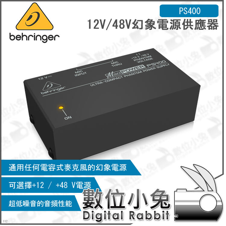 數位小兔【Behringer PS400 12V/48V幻象電源供應器】德國 耳朵牌 百靈達 超緊湊 前級