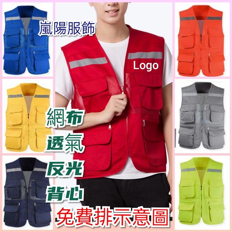 十件免費印刷💝V領反光網狀背心💝嵐陽多口袋工作服定製印logo工裝廣告活動背心超市印字義工團體文化背心網眼網洞志工