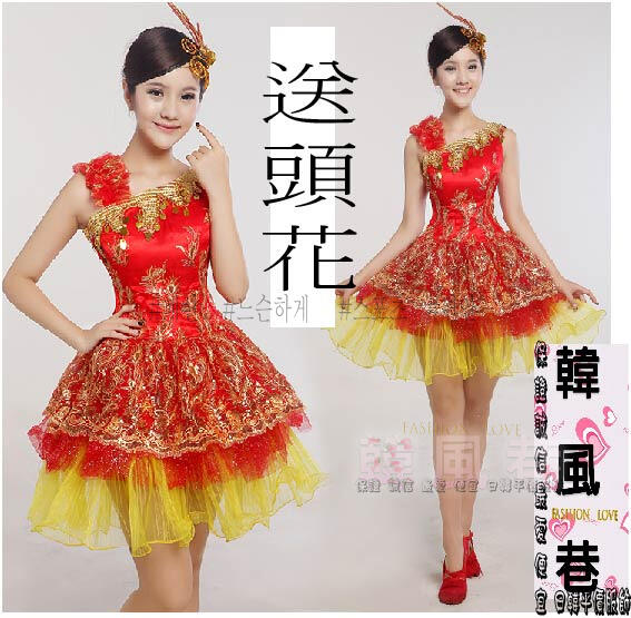 免運 韓風巷 舞蹈服装 成人 亮片 連衣裙 时尚 蓬蓬短裙 舞台表演服  送頭花  S-5XL 免運【韓風巷】台灣拍賣購
