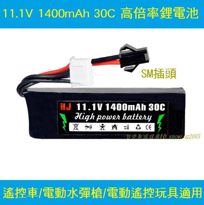 【台中數位玩具】11.1V 1400mAh 鋰電池 SM插頭 遙控車 坦克車 電動水彈槍 生存遊戲 電動玩具 bb電池