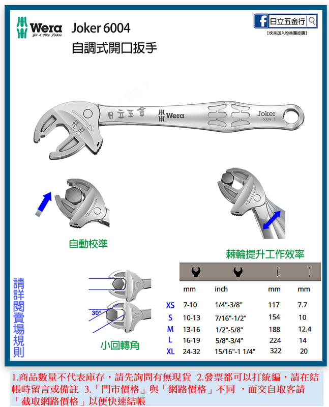 EJ工具《附發票》6004 JOKER 德國 Wera 自調式棘輪開口扳手