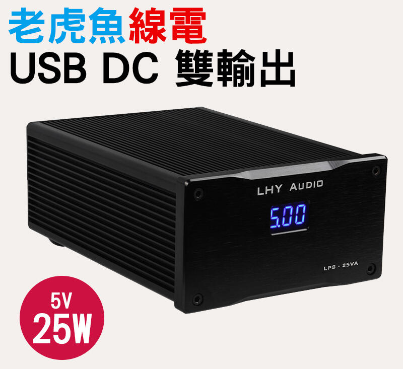 老虎魚 5V 25W 3A DC 線性供電 線性電源 (USB+DC雙輸出版) 贈轉接頭