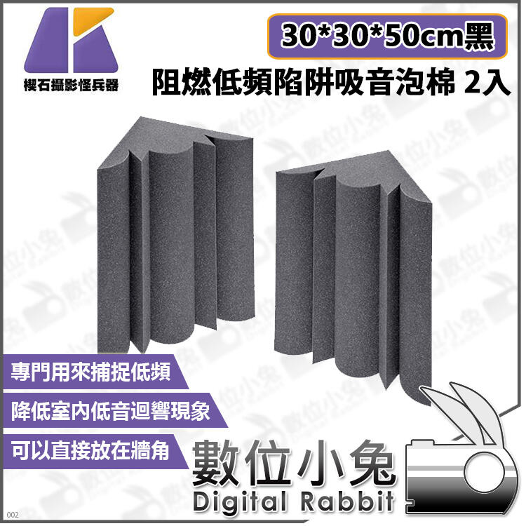 【KEYSTONE 阻燃低頻陷阱吸音泡棉 30*30*50cm 2入 黑】天花板 吸音海綿 錄音室 劇院 泡棉