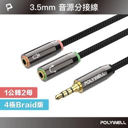 (現貨) 寶利威爾 3.5mm 音源轉接線 1公2母 25公分 分接線 Y-Cable 轉耳機麥克風 POLYWELL