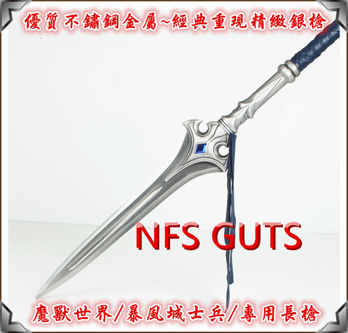 魔獸世界 暴風城士兵 暴風長矛 經典長槍 精緻騎士長劍盾頭盔 優質不鏽鋼未開刃COS精緻金屬道具表演武器 居家玩具收藏