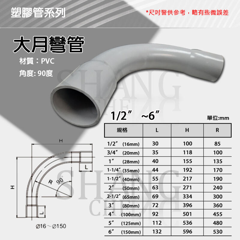 1-1/2" PVC 大月彎 大灣 90度大彎 大月灣 PVC管 水管材料 管材 大彎 大L 彎頭 1-1/2"