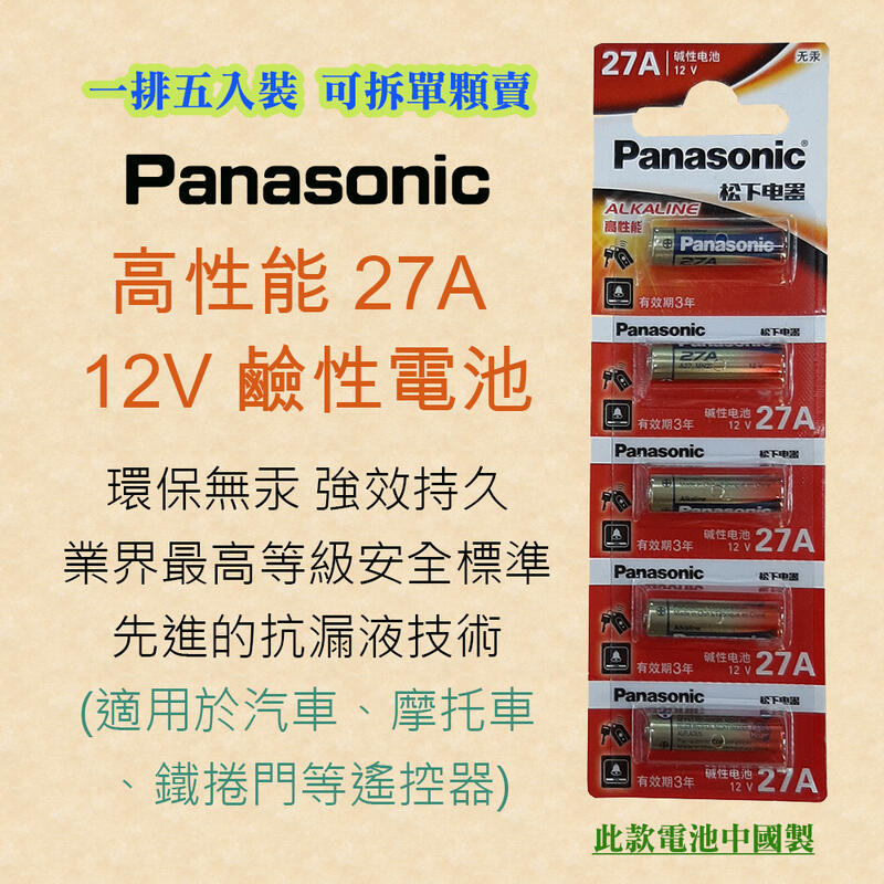 PA-27A 國際牌 Panasonic 高效能 27A 鹼性電池 12V 環保無汞 適用汽機車鐵捲門之遙控器 數量自選