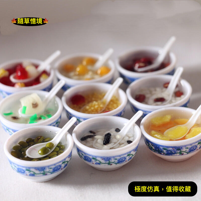 🍁隨草憶境(多款高檔)迷你仿真 中式 甜品 甜湯 綠豆 紅豆 薏仁 湯圓 桂圓 小米 青花瓷 食玩 微縮 微景觀模型