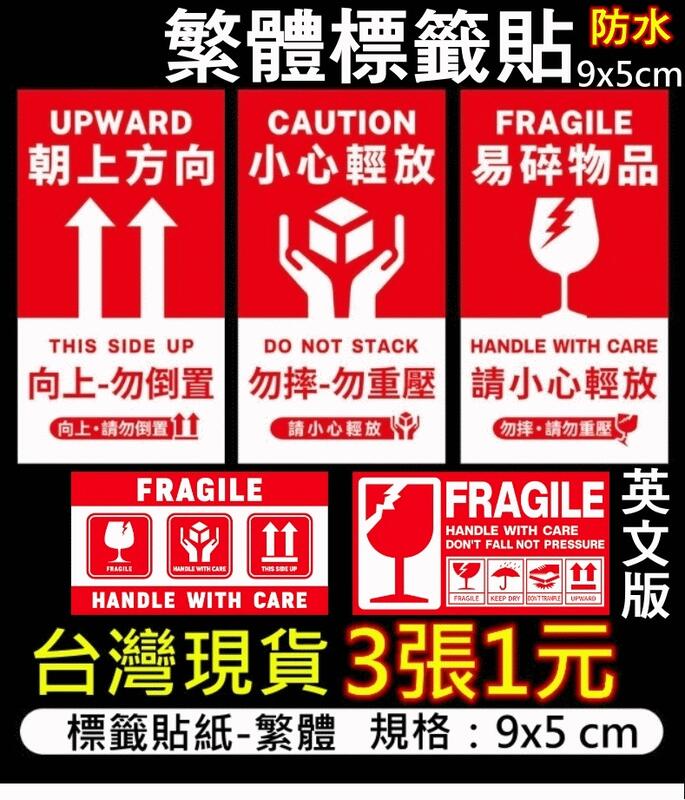 【台灣現貨】3貼1元-易碎貼紙/易碎標籤貼紙易碎貼網拍易碎貼紙/防摔貼紙/包裹貼紙玻璃易碎貼網拍貼紙警示貼易碎品貼紙