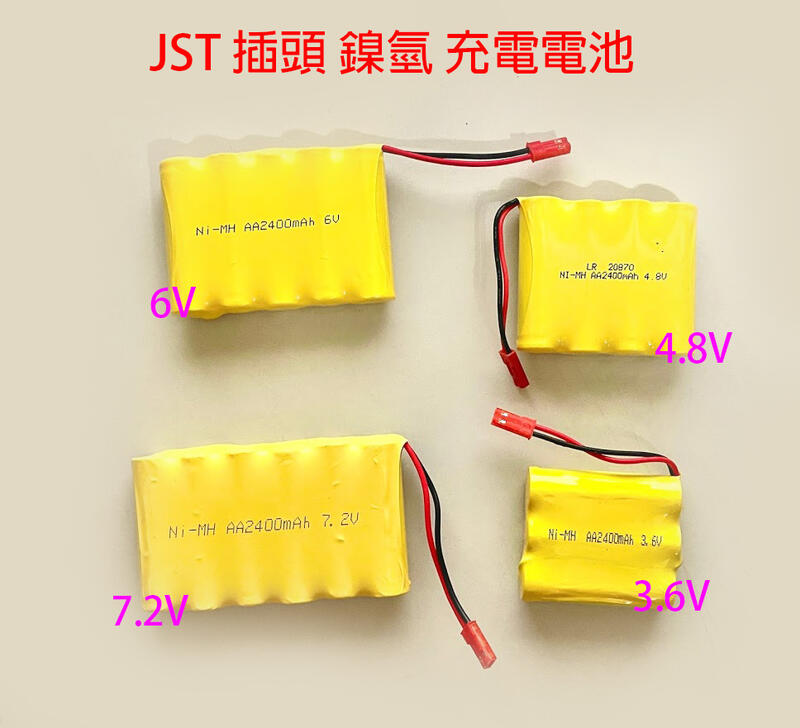 AA 3.6V 4.8V 6V 7.2V 2400mah JST 插頭 大電量 充電電池 遙控車 水彈槍 鎳氫 鎳鎘