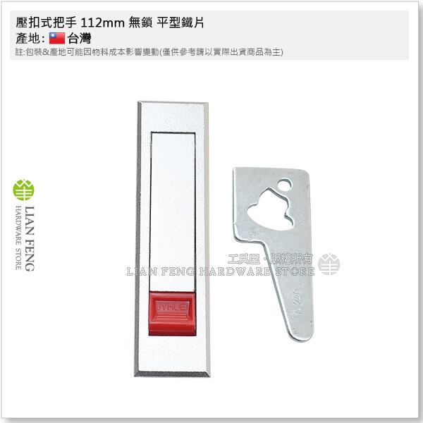 【工具屋】*含稅* 壓扣式把手 112mm 無鎖 平型鐵片 配電箱鎖 平面鎖 電氣箱鎖 開關箱 門鎖 把手鎖 台灣製