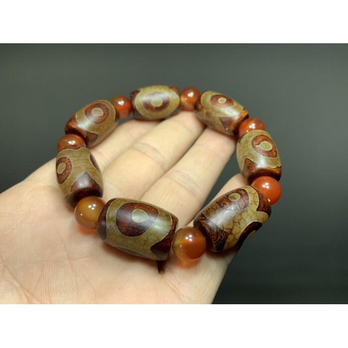【通天寶】西藏【老三眼天珠手鍊】能量 密宗 七寶 玉隨 瑪瑙 天珠 手串 辟邪 除惡 平安 九頁岩 天降石 J9