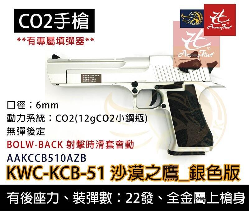 昊克-騎翼 KWC 沙漠之鷹 6mm CO2槍 手槍 滑套可動 無彈後定 後座力大 KCB51 銀色