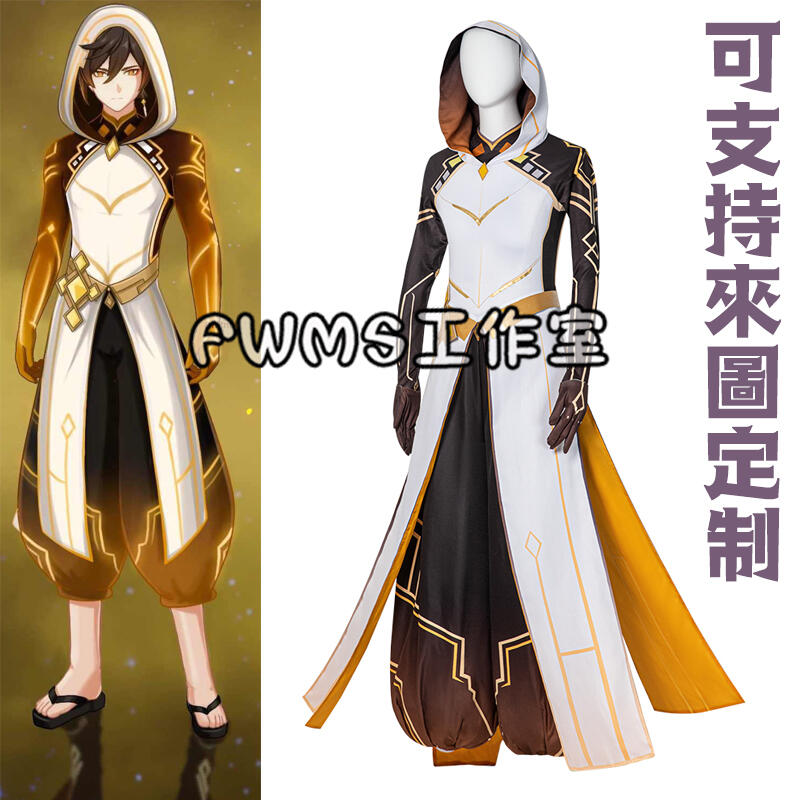 原神 鍾離COS服/COSPLAY服/COS假髮/COS木屐/耳環/專業定制/可來圖定做/免定金預定