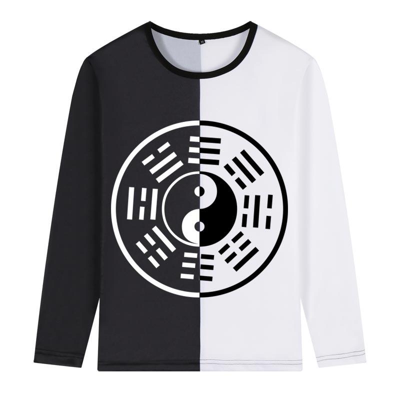 中國風周邊周易八卦太極陰陽魚圖案復古印花衣服男款拼色長袖T恤