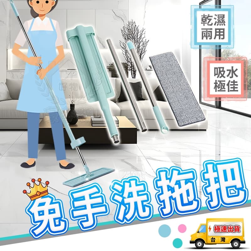 【平板拖把】免手洗拖把 懶人拖把 地板清潔拖把 吸水拖把 不可超取☆精品社