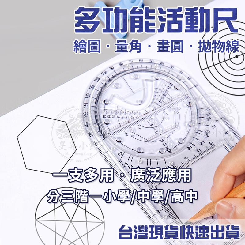多功能活動尺 【台灣現貨】 尺 圓規 直尺 三角尺 繪圖 量角器 文具 測量工具 繪圖尺 圓形 正方形 三角形