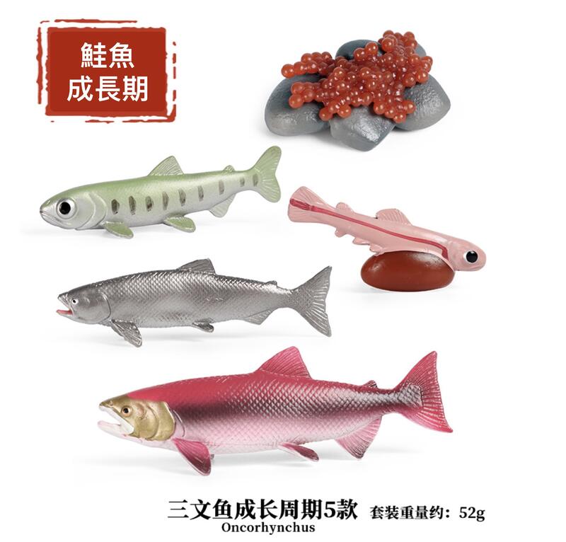 🍁隨草憶境(全套成長週期)仿真動物 鮭魚 三文魚 魚類 魚 魚卵 幼魚 海水魚 淡水魚 動物模型 玩具 益智 spg