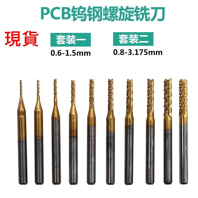 鎢鋼塗層 PCB銑刀 電路板 線路板 雕刻刀 鑼刀 玉米銑刀 立銑刀 0.6-1.5mm 0.8-3.2mm 套組 鑽頭