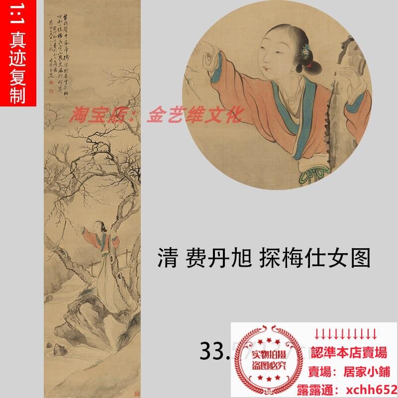 清 費丹旭 探梅仕女圖  工筆人物梅花裝飾畫立軸高清宣紙微噴【居家小鋪】
