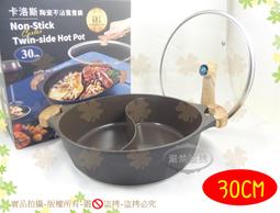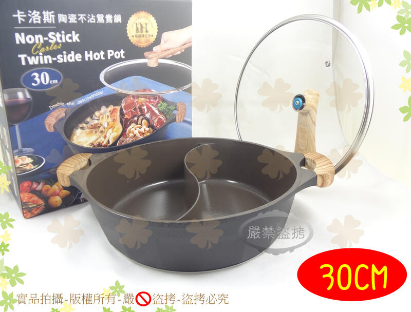 『陶瓷層』卡洛斯陶瓷不沾鴛鴦鍋30cm◆IH電磁爐適用/附站立式鍋蓋/鴛鴦火鍋/雙格湯鍋/麻辣鍋/雙格萬用鍋【諾非亞】