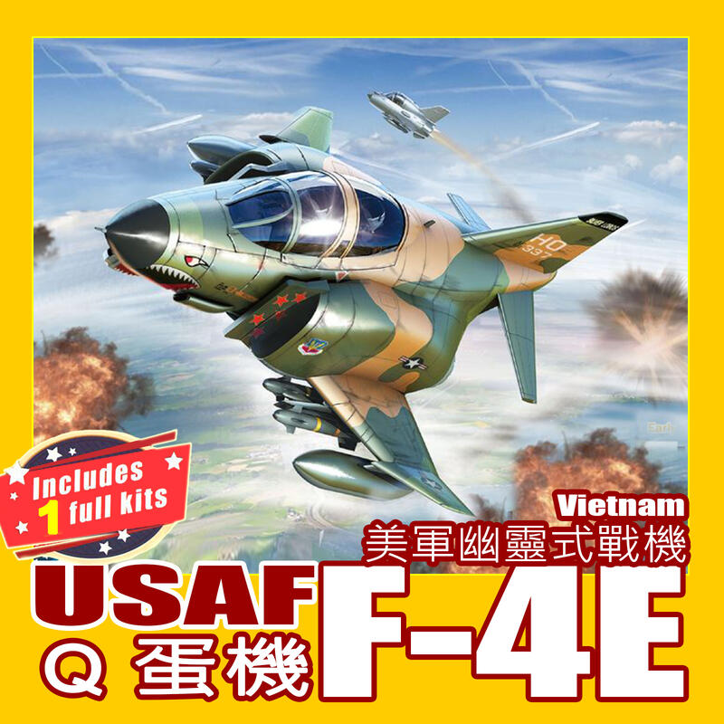 ㊣ Freedom Q版蛋機 F-4E 美國空軍幽靈式戰機 Phantom 越戰越南東南亞迷彩塑膠組裝模型 162073