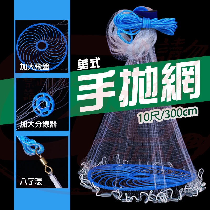 《廣成釣具》撈網【美式手拋網】單絲線10尺 加大飛盤 美式八卦網 美式手拋網 手撒網 單絲線 輪胎線 鋁圈漁網