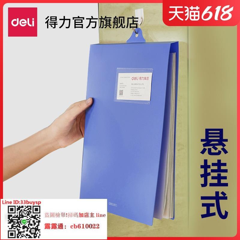 年中特殺!得力5333懸掛夾a4文件夾板夾豎版資料冊吊掛文件夾吊掛式掛墻試卷檔案夾工作夾塑料辦公財務豎式記錄夾板夾