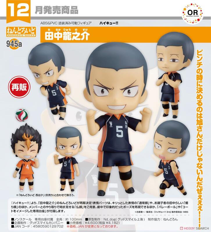 ☆勳寶玩具舖【現貨】代理版 GSC 黏土人 排球少年!! 945a 田中龍之介 Ryunosuke Tanaka
