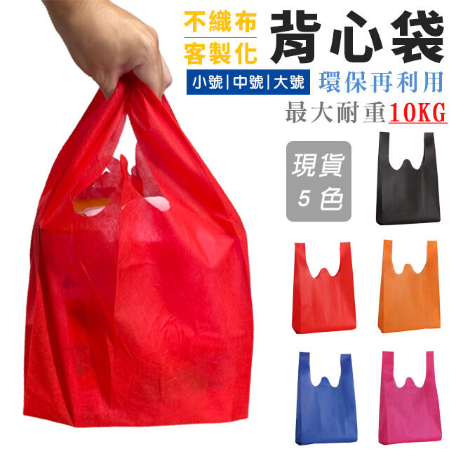 手提袋 不織布 背心袋 (5色) 客製化 LOGO 環保袋 購物袋 超市袋 便當袋 飲料袋【S330155】塔克百貨