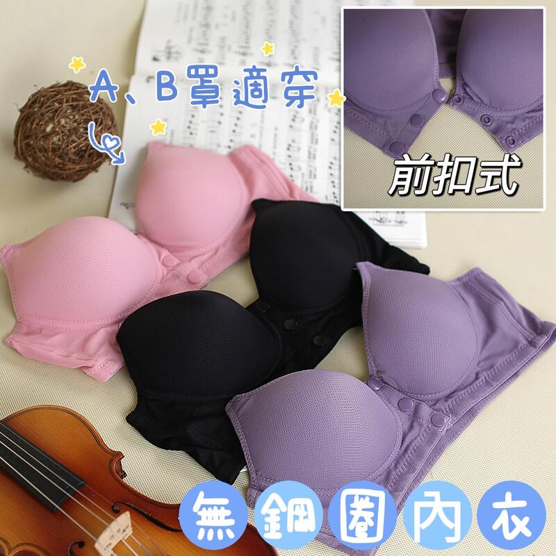 前扣式內衣無鋼圈有大尺碼A罩B罩34~42素色透氣孔【現貨8957】竹炭內裡厚杯內衣運動內衣集中 美背學生內衣媽咪內