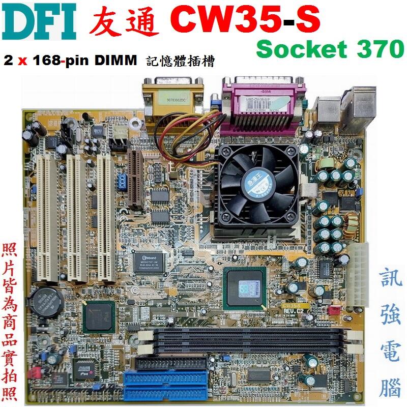 友通 CW35-S主機板、Socket 370腳位、SDR UDIMM記憶體、AGP顯示介面、附擋板、測試良品