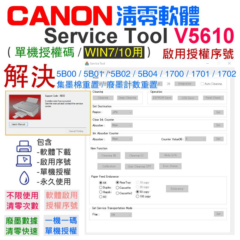 【創達科技】CANON 清零軟體 Service Tool V5610(單機授權碼/WIN7/10用)#5B00廢墨清零