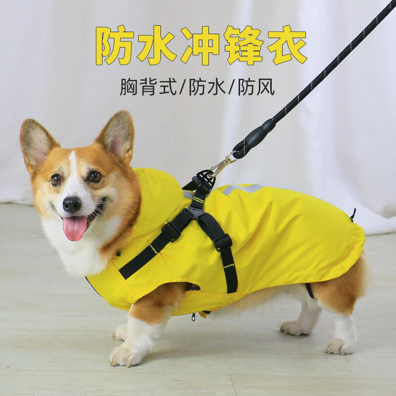 寵物雨衣狗狗防水衣服牽引繩雨天護肚子柯基泰迪小型犬雨披沖鋒衣狗狗雨衣 柯基雨衣 狗雨衣中大型犬 狗雨衣中型犬柴犬 寵物雨