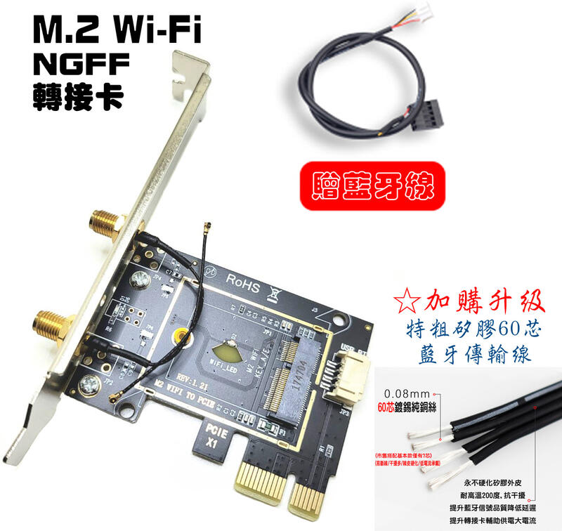 桌上型電腦 Pcie轉M.2 NGFF轉接卡,適用AX210 AX200 9260 8265 7265 3168