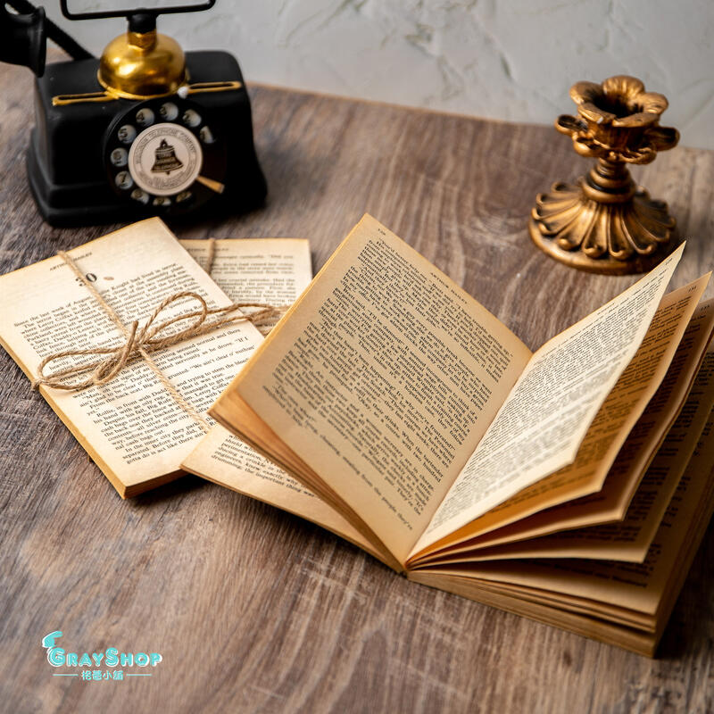 《GrayShop》麻繩捆裝舊書(A款) 老舊英文書籍 復古文藝 綑綁書籍 黃書 拍照道具 攝影道具