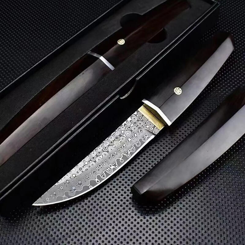黑檀武士 雷藏大馬士革鋼刀 鋒利開刃 隨身小刀 花紋鋼收藏刀 刀具 武士刀