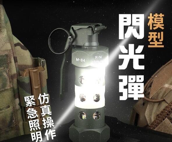 (圓仔)  M84閃光彈模型,可爆閃7秒可恆亮,仿真操作震撼彈手雷玩具,可當照明燈手電筒 手電筒 照明 爆閃 閃光彈