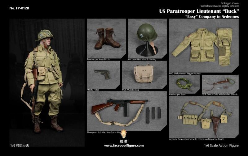 Facepoolfigure臉譜模玩  1/6比例 二戰美軍空降師-E連中尉 可動人偶 FP012B(傘兵版)