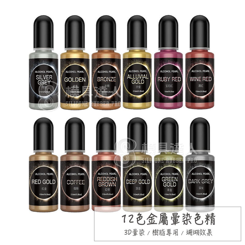 【模具達人】12色 金屬 暈染色精 染料(滴膠/水晶膠/環氧樹脂/爆款/熱賣/色精/UV膠/時光寶石)