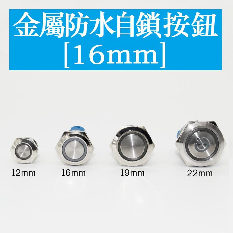 16MM自鎖 帶燈LED金屬按鈕防水按鍵自鎖位點動自鎖開關車改裝 3V-220V 紅色 黃色 藍色 綠色