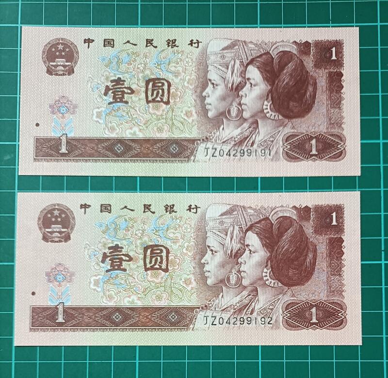 保真堂ZC173 人民幣1996年1元 補號JZ 2張連號 98-全新無折 961第四版人民幣  壹圓 第四套人民幣