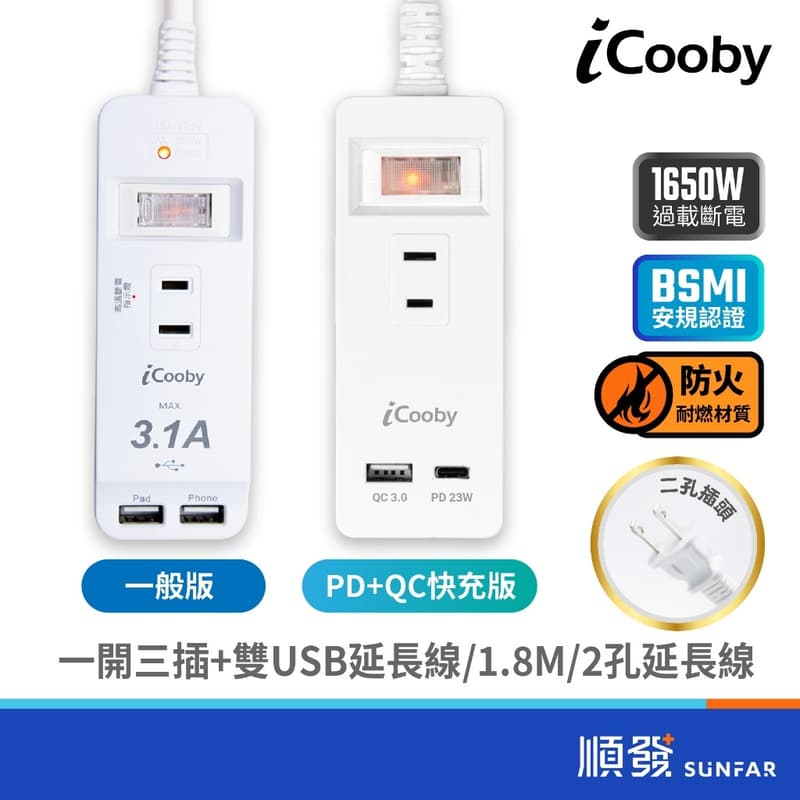 iCooby iCooby PM3 一開三插+雙USB延長線 1.8M 2孔延長線