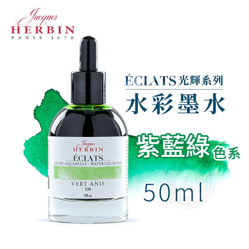 『ART小舖』法國J.Herbin Eclats光耀系列 水彩墨水 50ml 紫藍綠色系 單瓶