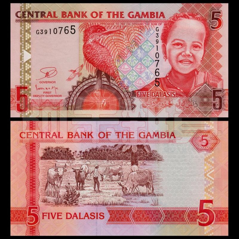 阿呆雜貨 實體拍攝 甘比亞 精美外幣 5 達拉西 水鳥 水牛 女孩 具收藏價值商品 鈔票 非洲 落後